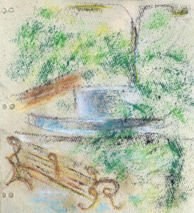 Ще не встиг я розкластись як якийсь пильний чоловік почав розпитувати, що то за устаткування, що я збираюсь робити, та скількі в принципі коштують етюди. В цей час Андрій Богомолов вже вербував перехожого архітектора приєднуватись до групи пленрів. В подальшому перехожі в саду не вирізнялись великою активністью. Єдине - частенько фотографували дивну групу в стильних фартуках. Хоч можливо це моє особисте враження бо цього разу я був таким собі роялем в кущах.