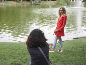 Давно не була на ВДНГ, уже цікаво! Вражає архітектура і добротність історичних павільйонів (і мої дитячі спогади про неймовірні експонати всередині) Чесно кажучи шукала місце під колонами (на випадок дощу) і так, щоб було видно фонтан - він чудовий! За 50 років виросли великі красиві дерева. Але хотілось показати і сучасних відвідувачів: писала з натури, проводячи поглядом. Всі різні, всі гарні!!! Момент істини...