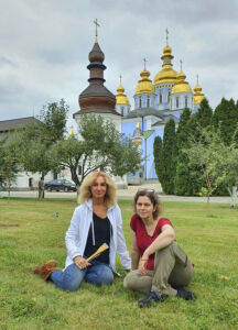 Пізніше завітали в гості прекрасні амбасадорки Словакії та Швеції на Київських пленерах Наталка Студенкова та Ольга Стернік. Пару фото на згадку і вони направились в пошуку сюжетів за парканом монастира. Можливо це і вірно - щоб не відволікати служителів від культу.